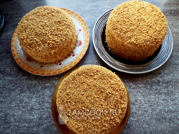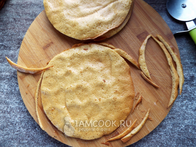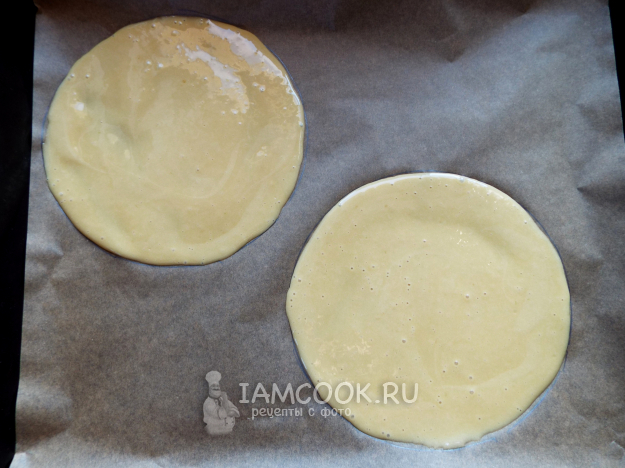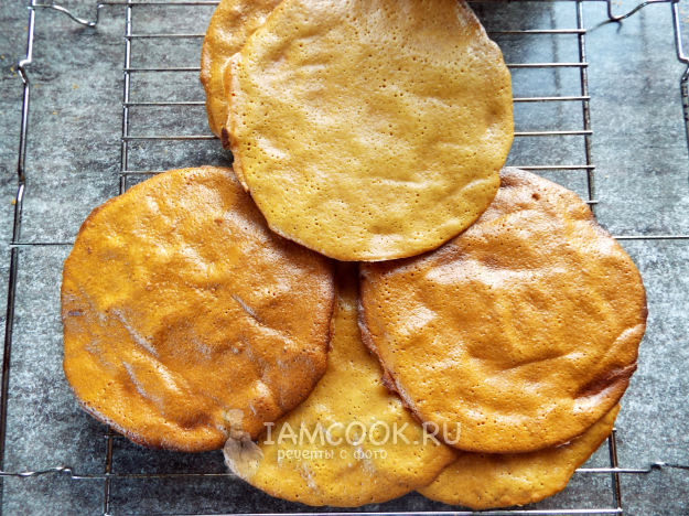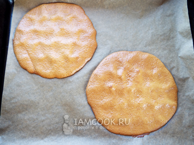 При помощи лопатки переложить коржи на решётку и отправить выпекаться следующую партию.