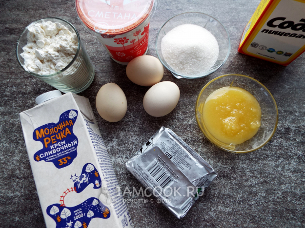 Медовик со сметанно-сливочным кремом готовим из такого набора продуктов.