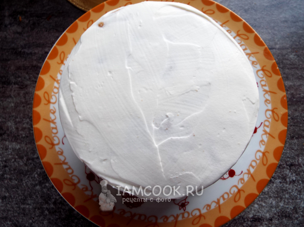 Также обмазать кремом торт сверху и по бокам. Постарайтесь выровнять края, насколько это возможно)).