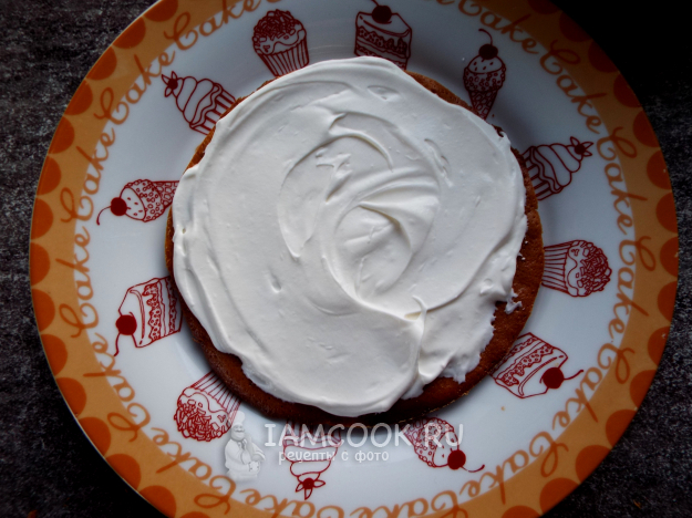 Щедро прослоить лепёшки кремом, складывая друг на друга.