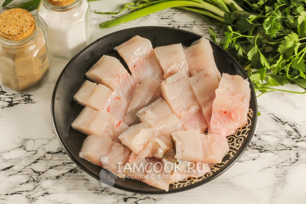 Щуку очистите от чешуи и внутренностей. Разрежьте брюшко и тщательно промойте тушку внутри и снаружи. Срежьте голову и филетируйте рыбу. Удалите крупные косточки и нарежьте филе порционными кусочками.