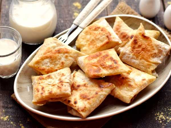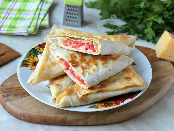 Сверните лаваш конвертиком, подворачивая края. Сверните таким образом все полоски лаваша.