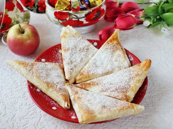 Горячими подавайте их к столу. Конвертики мягкие и ароматные, понравятся как взрослым, так и детям! Яблочная начинка сочная и очень вкусная.