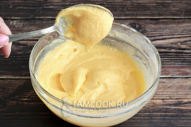 Должно получиться лениво сползающее с ложки, очень гладкое тесто. Если у вас получится густовато, то добавьте еще ложку молока.