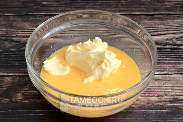Добавьте мягкое масло и снова все смешайте. Растапливать масло нельзя.
