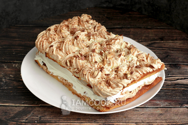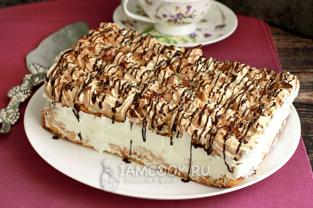 Этот торт обычно ничем не украшают, он самодостаточен сам по себе. Но мне захотелось добавить горького шоколада. Пару долек растопила в микроволновке и нанесла тонкую паутинку.