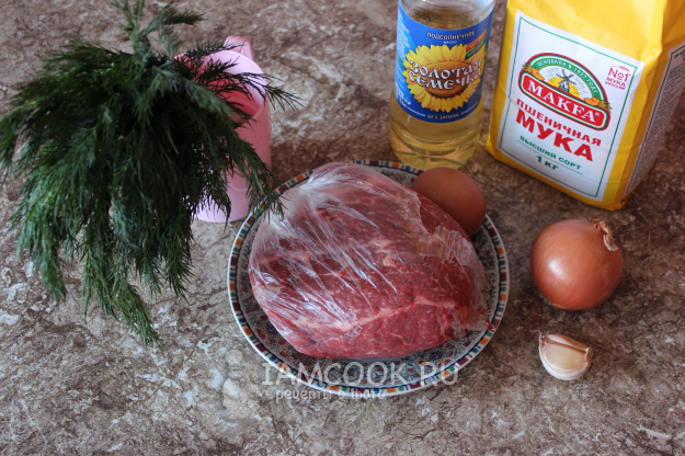 Чтобы приготовить казахское блюдо Жайма, понадобятся следующие продукты (на фото ниже и в списке ингредиентов). Использую говяжью шею, а подходят и другие отрубы говядины.