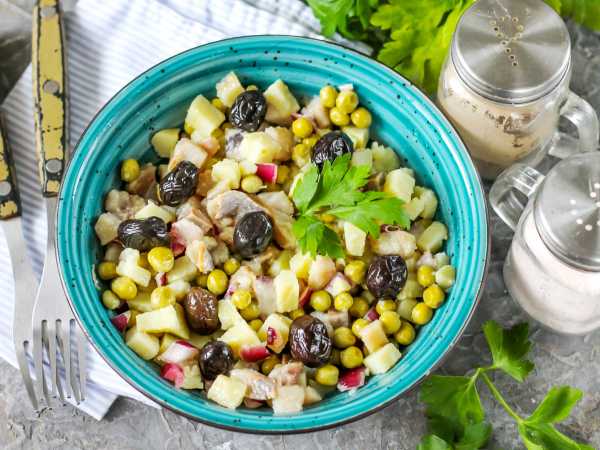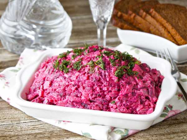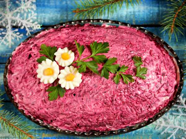 После чего салат «Сельдь под шубой» с зеленым горошком можно украсить по своему вкусу и подавать к столу. Приятного аппетита!