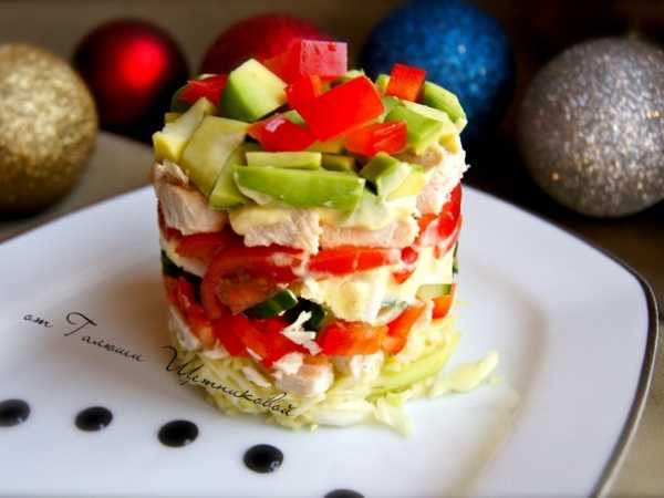 Поверху распределим зеленый горошек и еще слой майонеза.