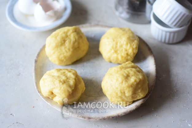 Замесим мягкое, не прилипающее к пальцам тесто. Разделим тесто на 4 части, обернем пищевой пленкой и отправим в морозильную камеру на 1 час.