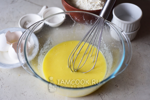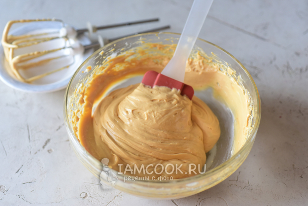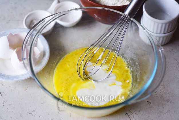Венчиком хорошенько взобьем эти ингредиенты, добавим йогурт. Перемешаем.