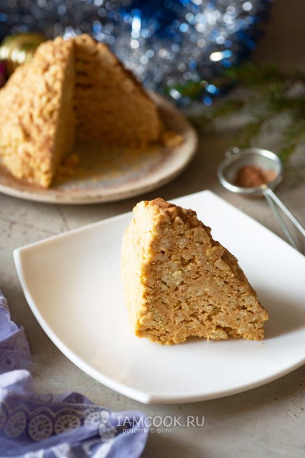 После холодильника классический торт «Муравьиная горка» со сгущенкой приобрел стабильную форму - можно подавать к столу и нарезать на кусочки. Приятного аппетита!