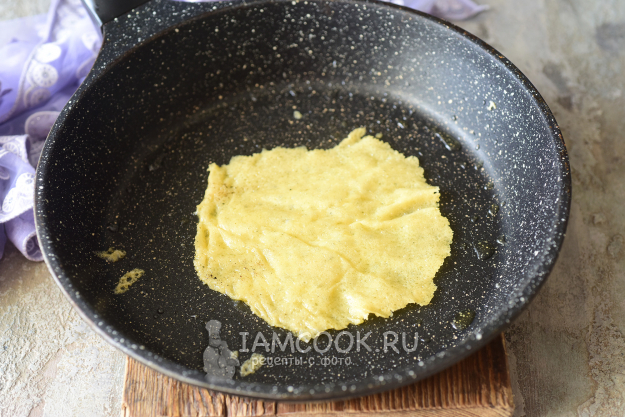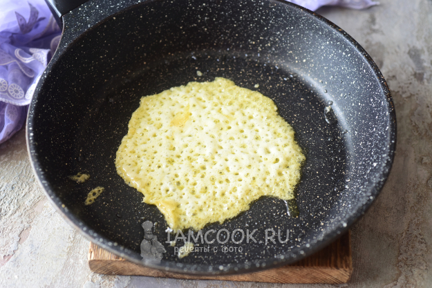 Переворачиваем сырный блинчик на другую сторону и уже совсем недолго (секунд 30) прогреваем его.