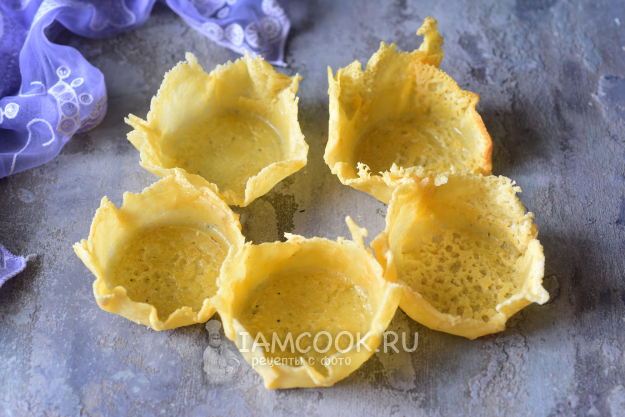Таким же образом поступаем с оставшимся тертым сыром, и перед нами сырные тарталетки готовые к подаче.