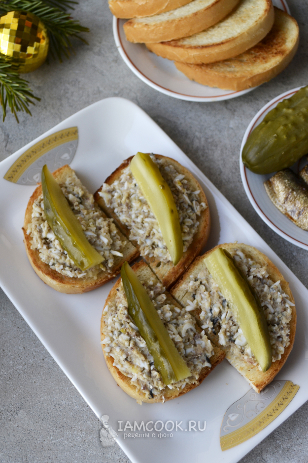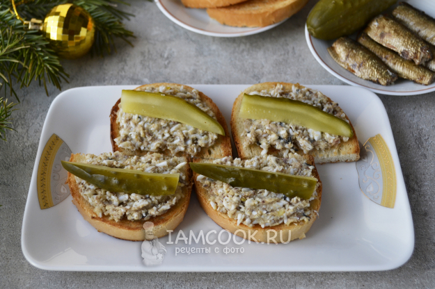 На поджаренный хлеб положите подготовленную шпротно-яичную массу.