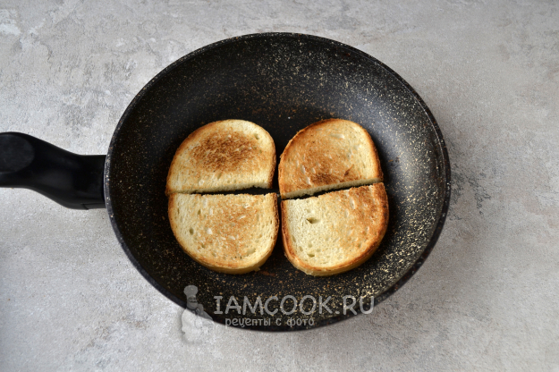 Белый хлеб поджарьте на сухой сковороде с обеих сторон до румяной корочки и охладите.