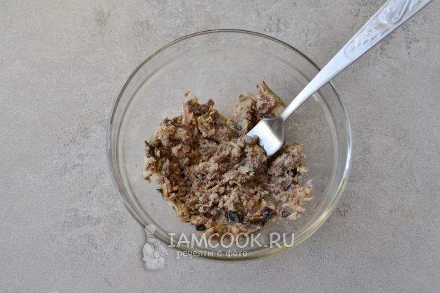 Тщательно перемешайте шпроты с яйцами и майонезом. Добавьте измельченный зубчик чеснока и еще раз перемешайте.