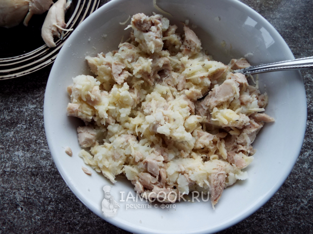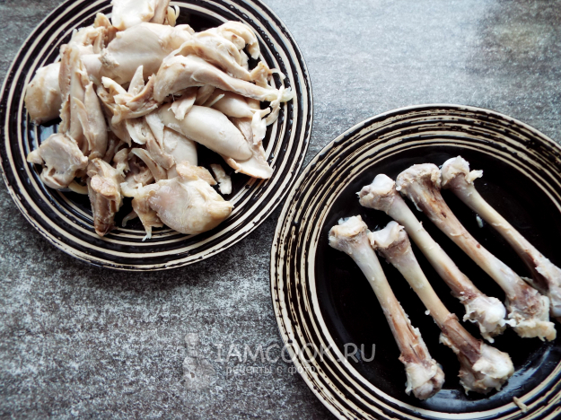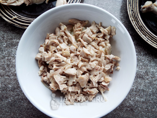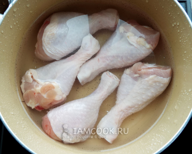 Курицу залить водой, немного подсолить и отварить до готовности.