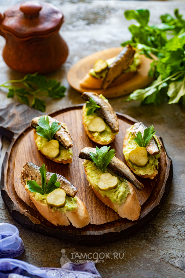 Готовые бутерброды со шпротами и авокадо подаем к праздничному столу. Приятного аппетита!