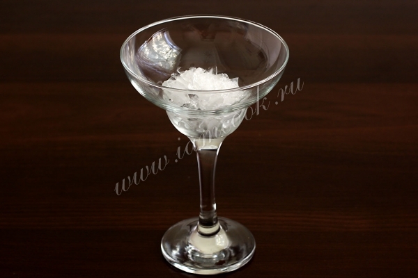 В подходящий бокал выложить дробленый лед.