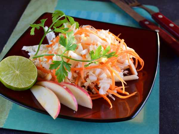 Вкусный хрустящий салат «Коул слоу» с краснокочанной капустой готов.