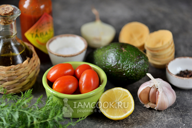 Соберите все продукты для приготовления салата с авокадо в тарталетках по списку к рецепту. Почистите лук, помойте его вместе с помидорами, укропом и авокадо под проточной водой.