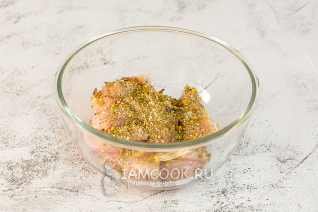 Я оставила курицу с приправой и мукой на пару часов в холодильнике))) так уж получилось, не успела сразу приготовить, она пропиталась ароматом!!