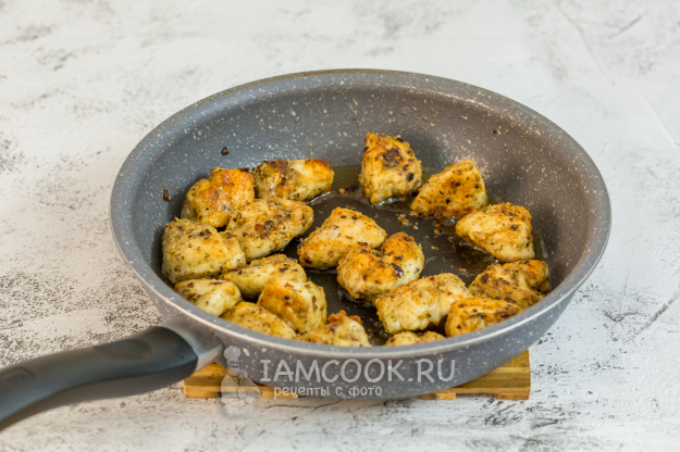 Куриное мясо нарежьте на удобные для вас кусочки (я резала на 1-2 укуса).