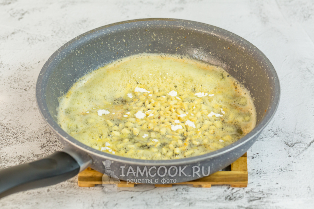 Добавьте воду, перемешайте, чтобы не было комочков. Прогрейте до легкого загустения.