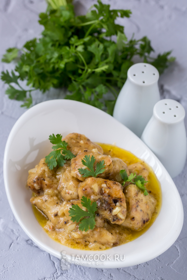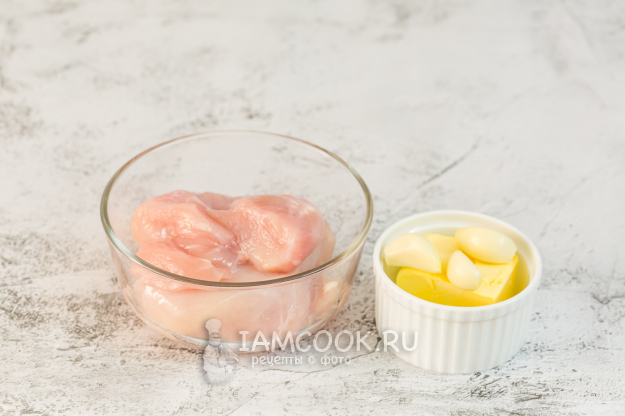 Для приготовления курицы в чесночном соусе на сковороде подготовьте продукты по списку.