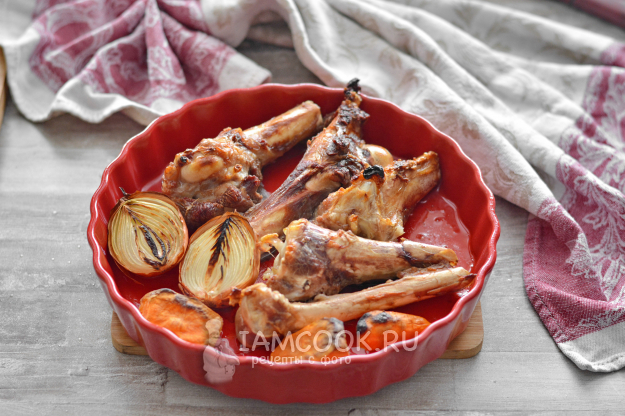 Овощи обычно поджариваются через 20-25 минут и их можно будет вынуть раньше. А кости будут запекаться 40-60 минут.