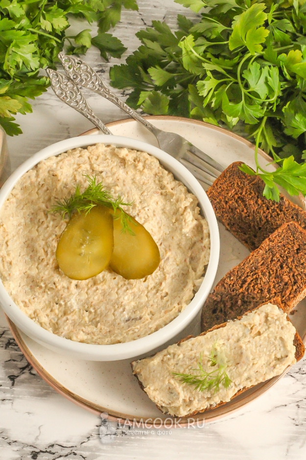 Выложите намазку на хлеб для бутербродов со шпротами в пиалу или креманку, украсьте и подайте к столу. Особенно вкусна она с солеными огурцами, каперсами, черным хлебом или багетом.