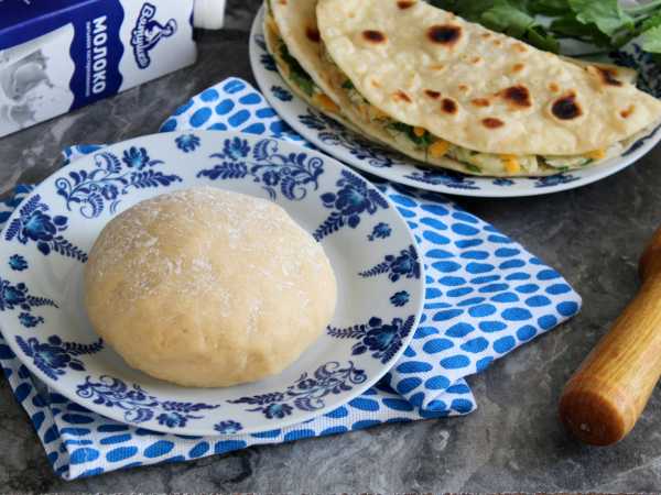 Пока жарится лепешка, можно наполнить начинкой готовую предыдущую. Для этого на половину лепешки уложите порцию начинки и закройте второй половиной.