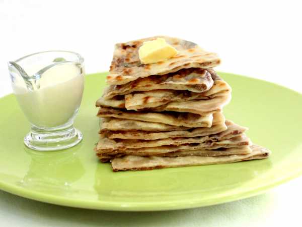 Излишки муки нужно периодически удалять со сковороды, а то они будут гореть, дымить да и портить вкус лепешек.