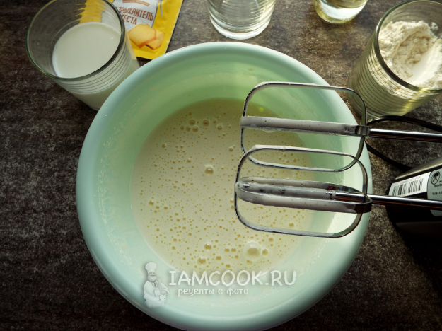 Перемешать до однородности. Поделить тесто на три части и выпекать по очереди.