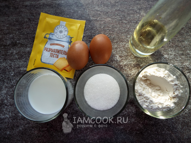 Именно такой набор продуктов понадобится для приготовления коржей для торта на молоке.