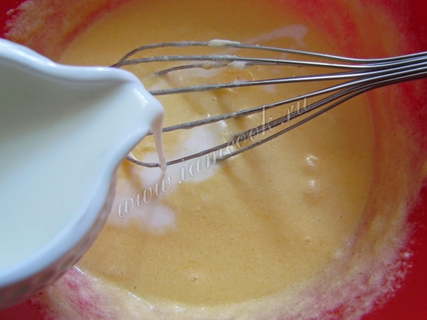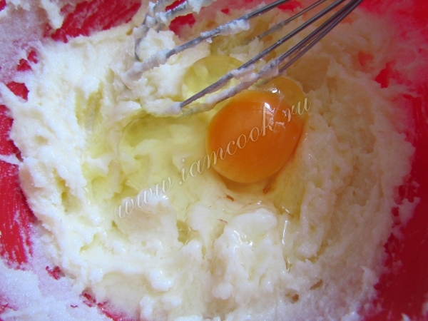 По одному введите в массу яйца, каждый раз тщательно взбивая.