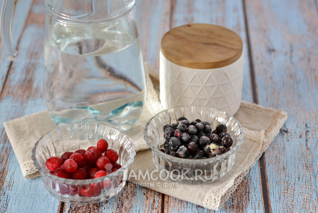 Начнём? Подготовьте ингредиенты для компота из клюквы и смородины. Ягоды можно не размораживать.