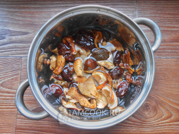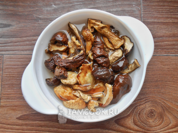 Белые сушеные грибы залейте холодной водой и оставьте до набухания минут на 15-20.