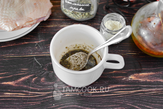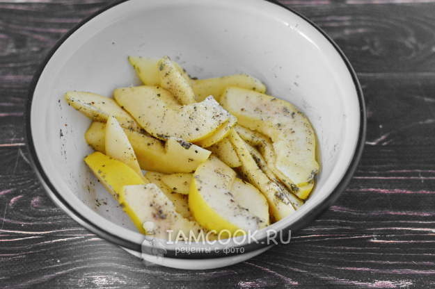 Для маринада соедините соль, перец, итальянские травы, сухой чеснок и растительное масло. Можно добавить еще пару щепоток сахара, поскольку айва может быть достаточно кислой.