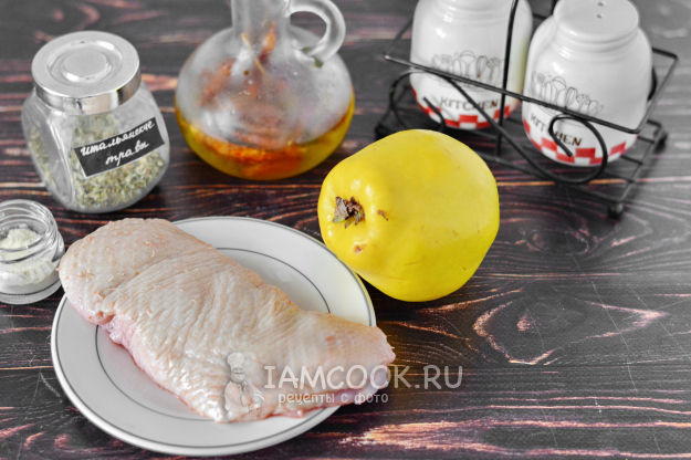 Всё, что вам потребуется для приготовления утиной грудки с айвой в духовке - на фото ниже.