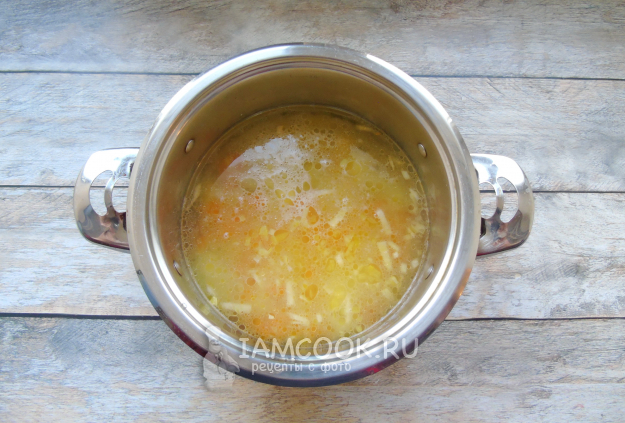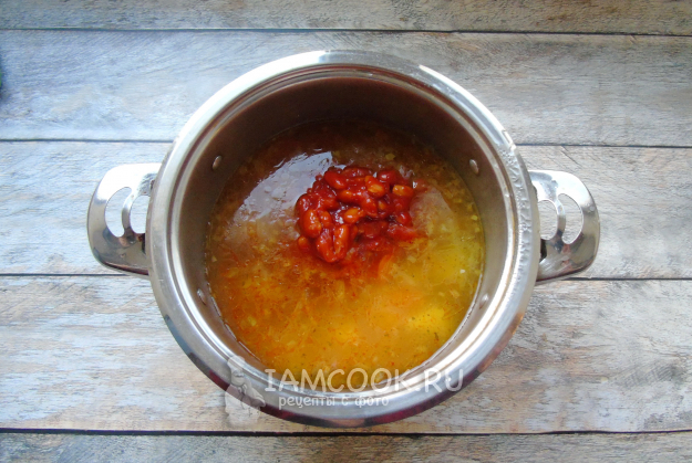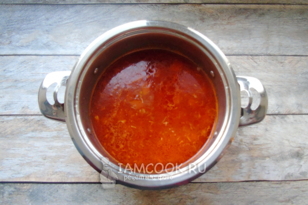 Варите суп до готовности овощей. Затем добавьте консервированную фасоль, посолите и поперчите.