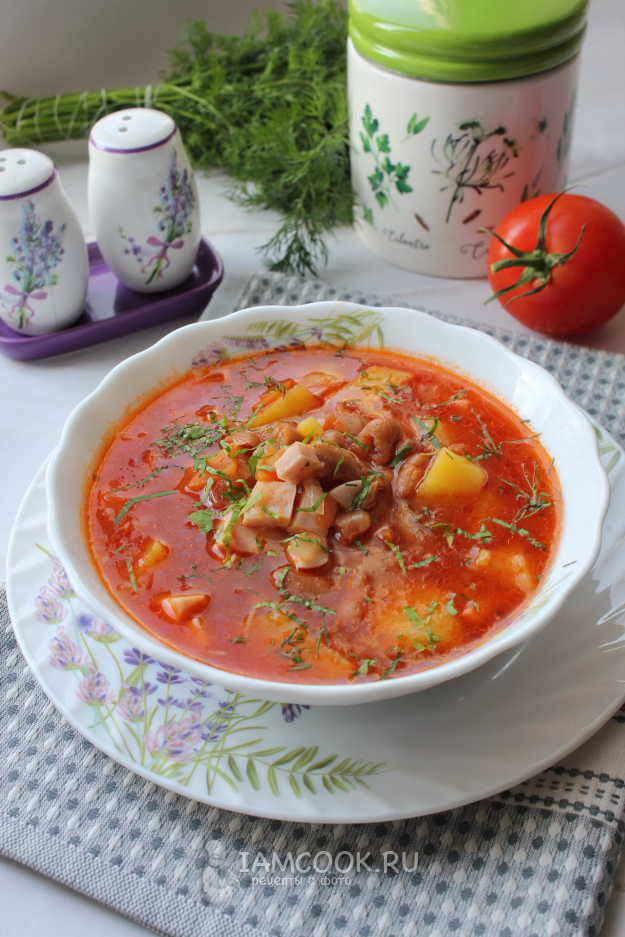 Суп с фасолью и колбасой готов. Ароматный, вкусный и сытный.