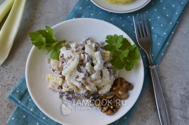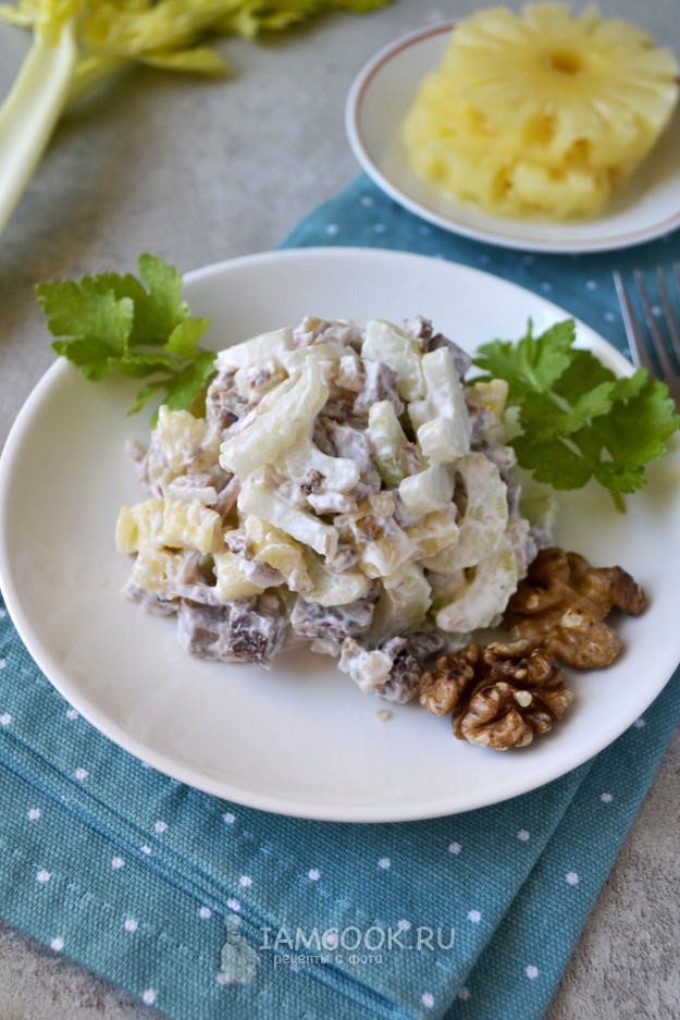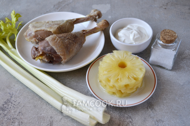 Продукты для салата «Императрица» с ананасом и сельдереем - перед вами.