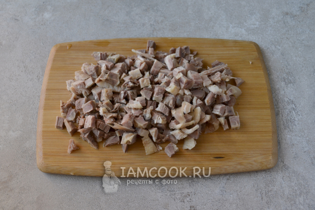 Отварите любую часть курицы в подсоленной воде до готовности. Выньте из бульона и полностью охладите.
