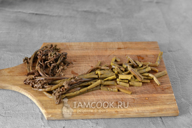 Вымоченный папоротник нарежьте на кусочки примерно по 1 см.