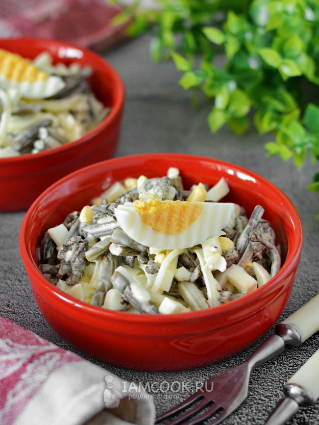 Салат с соленым папоротником и яйцом готов. Прошу к столу!