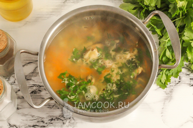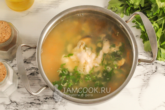 Мидий очистите от ракушек, удалите из них ногу, которой моллюск крепится к ракушке. Промойте и добавьте в кастрюлю вместе с натертым твердым сыром и мелко нарезанной петрушкой.
