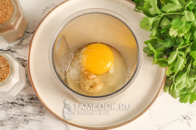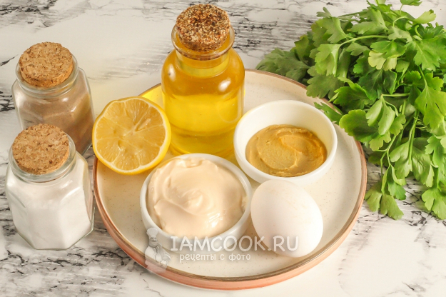 Вбейте в глубокую емкость для погружного блендера куриное яйцо. Всыпьте щепотку соли, молотого черного перца и выложите горчицу. Допустимо использовать горчицу в зернах вместо обычной магазинной. Влейте лимонный сок.