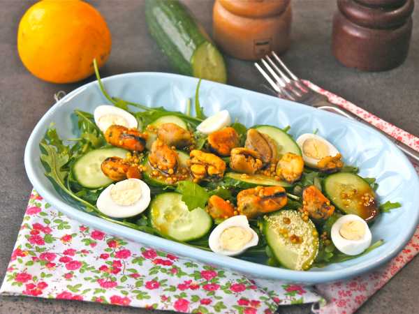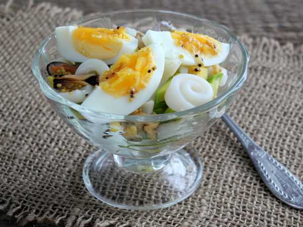 Продукты для приготовления салата с мидиями и огурцом - перед вами!